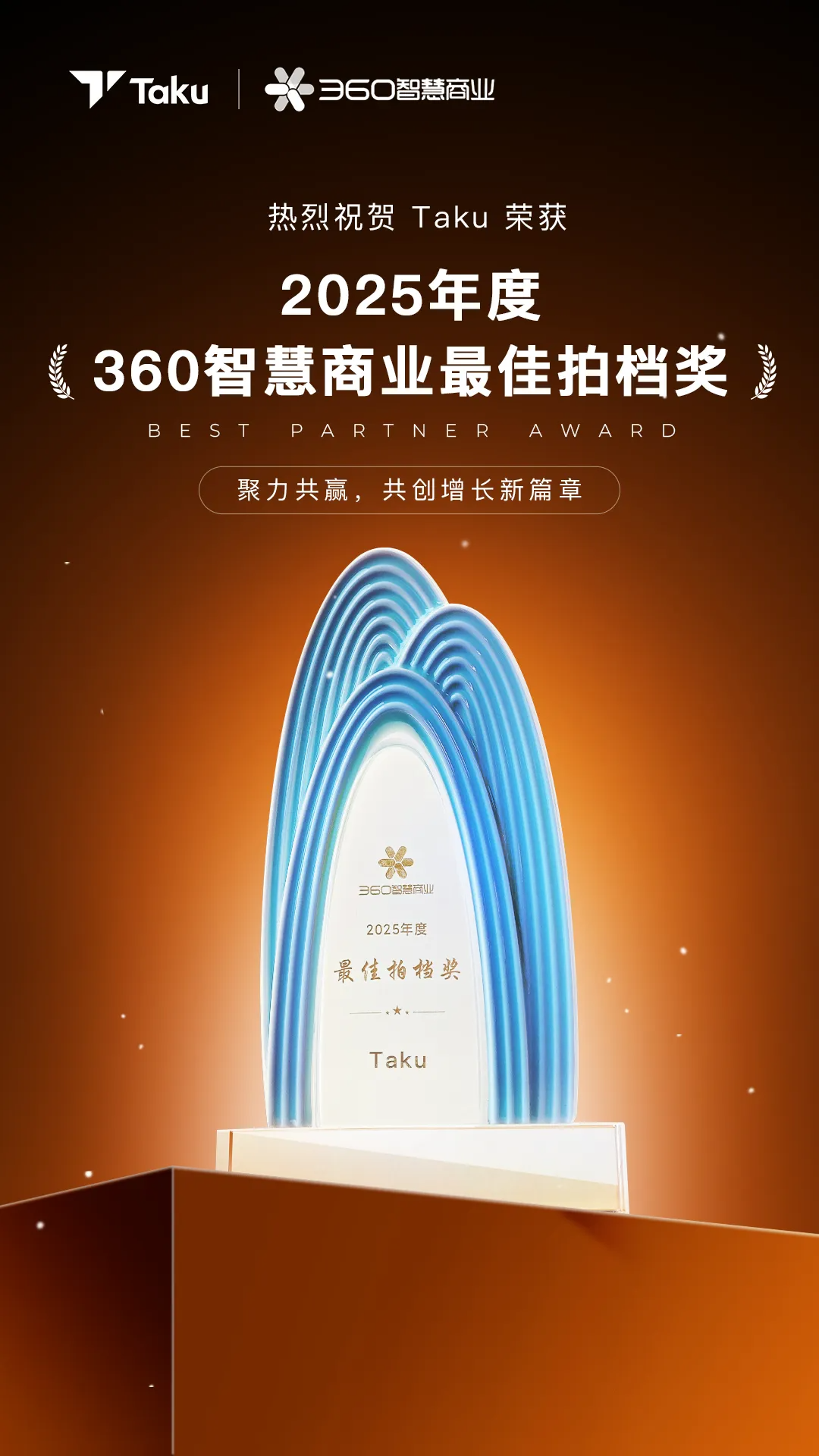 品牌喜讯 | Taku荣获360智慧商业2025年度“最佳拍档奖”