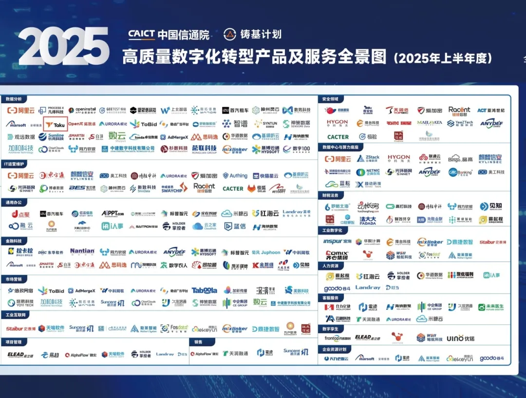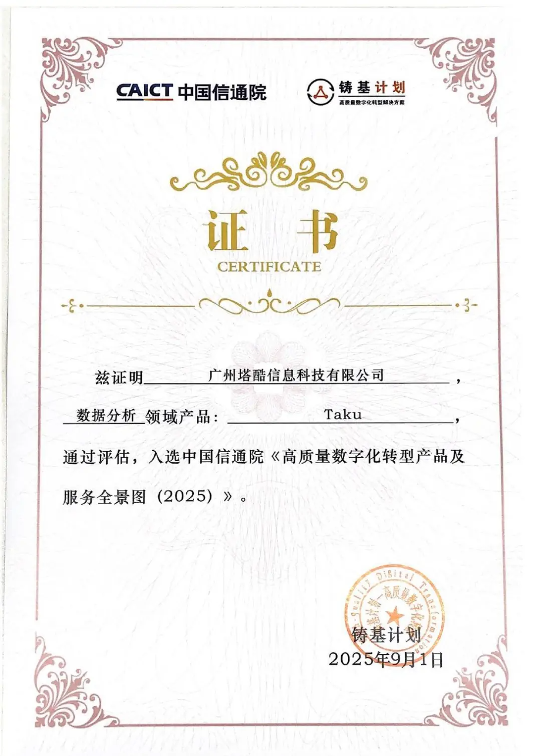 品牌荣誉 | Taku荣获2025中国信通院高质量数字化转型产品及服务全景图证书