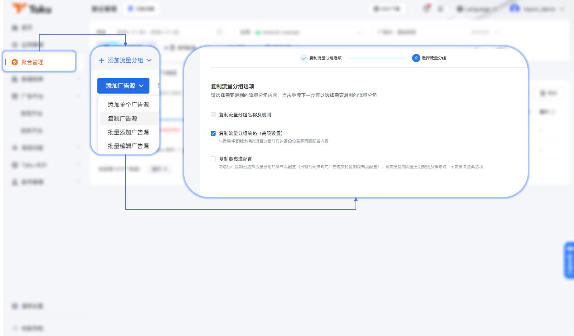 (1)入口:Taku后台-聚合管理-添加流量分组-复制流量分组