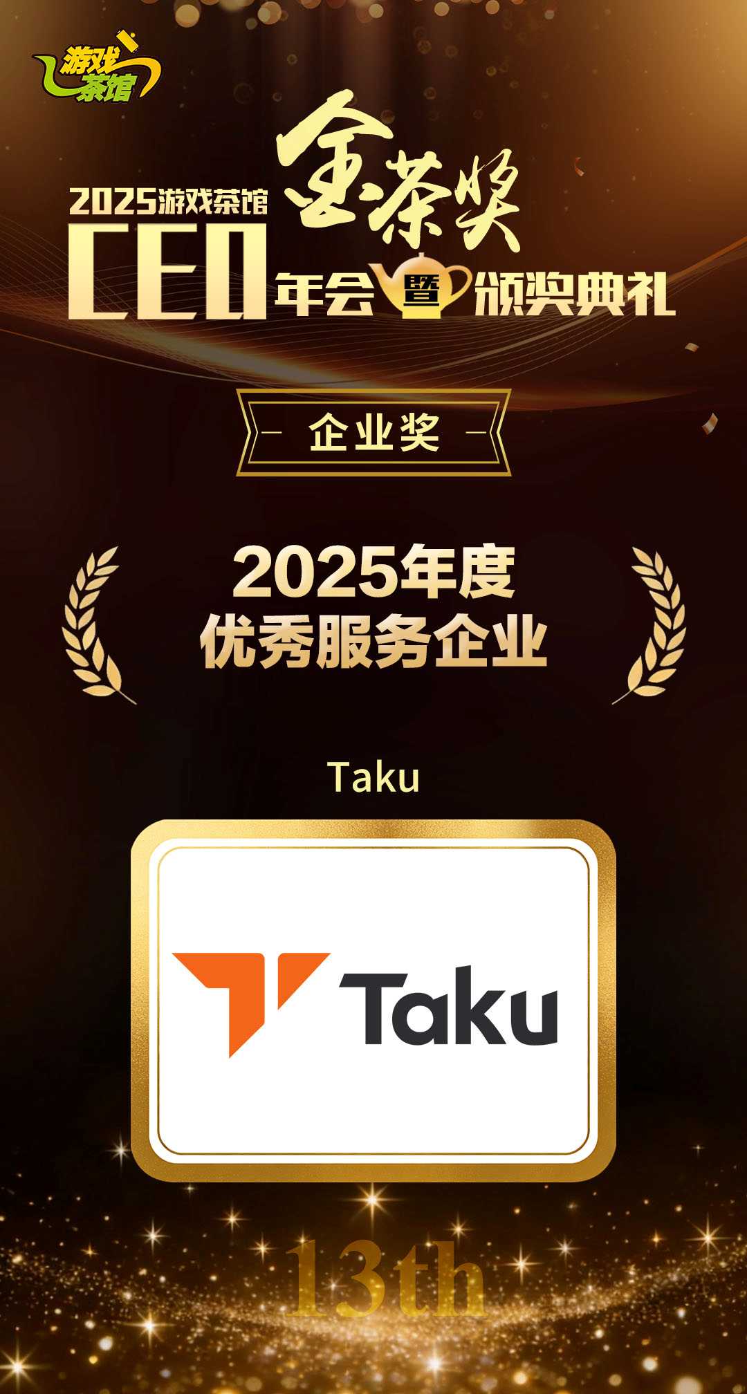 近日,第十三届 “金茶奖” 评选结果正式揭晓,Taku 凭借在移动游戏商业化领域的突出表现和一站式变现服务方案的优质交付,斩获 “2025年度优秀服务企业” 殊荣。